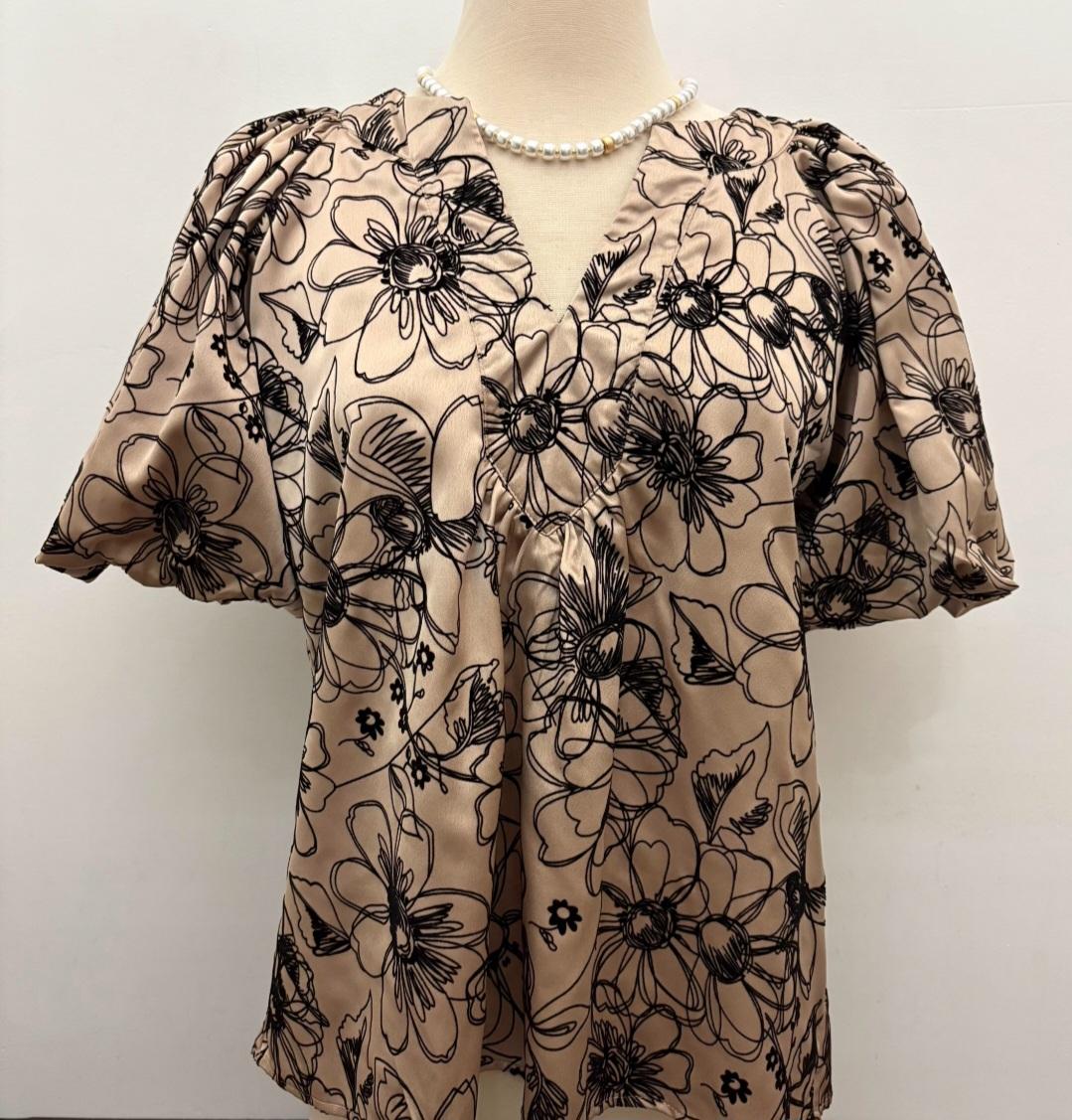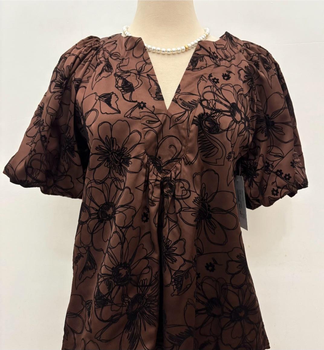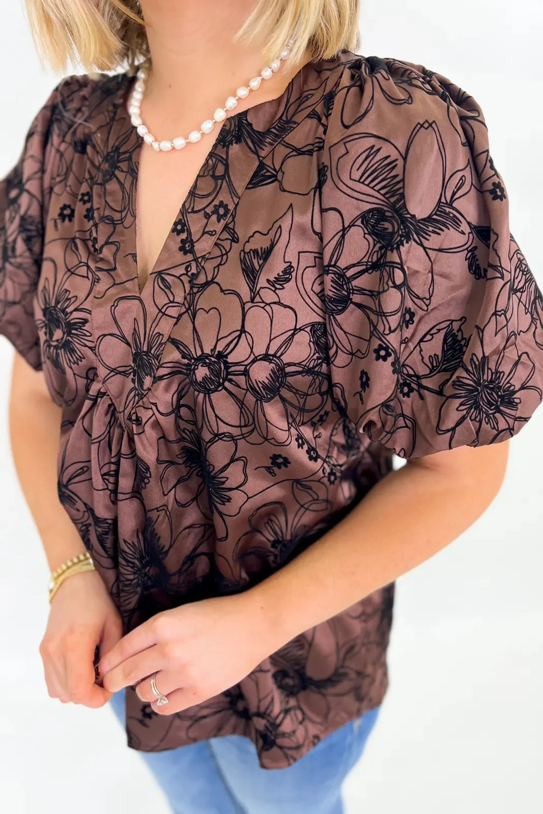 Luxe V-Neck Floral Stitched Top - Brown / S is backordered and will ship as soon as it is back in stock.