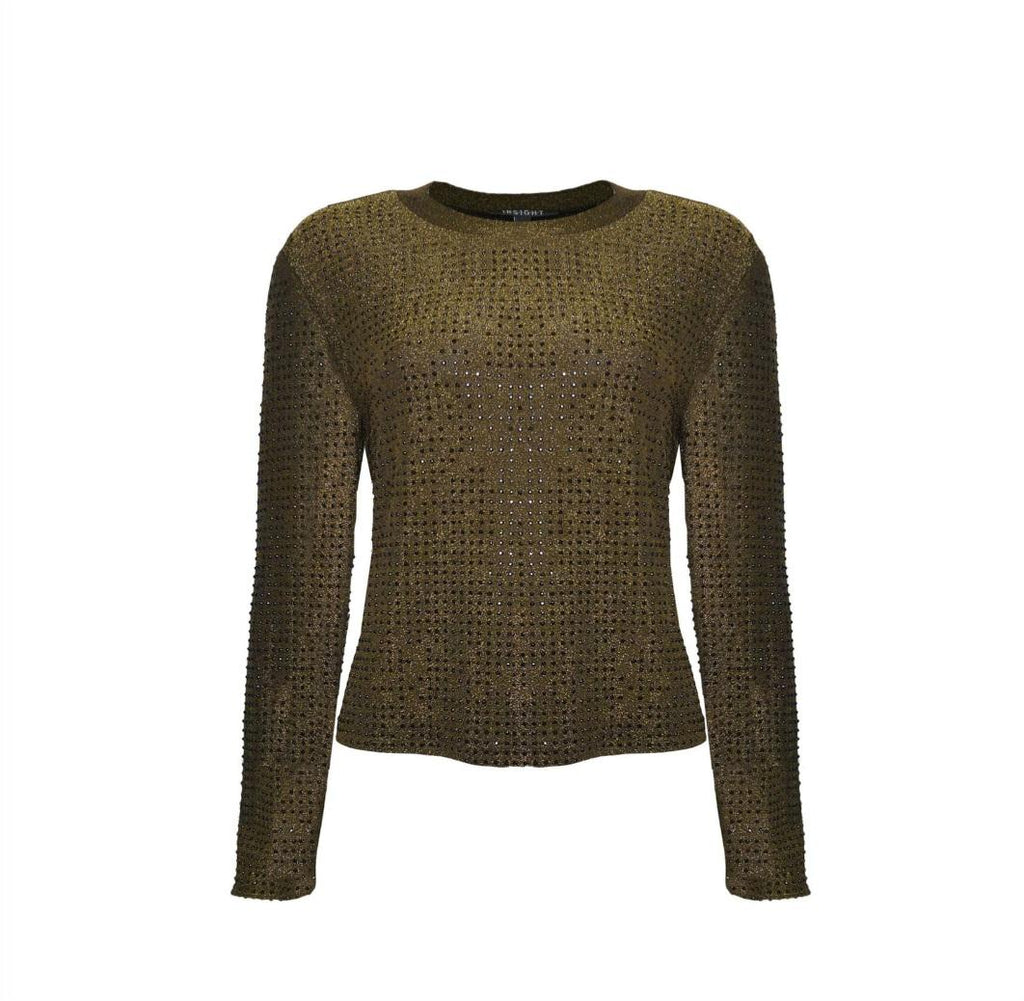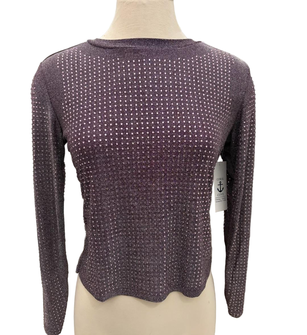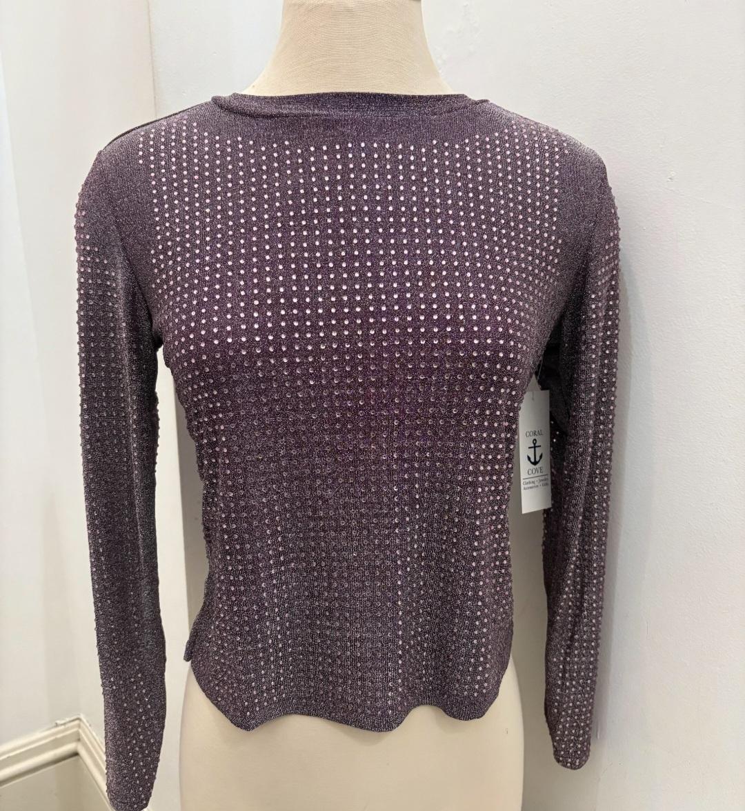 - Long sleeves provide versatile layering options for any season, while carefully placed metallic stud embellishments add an unexpected edge and contemporary flair.
